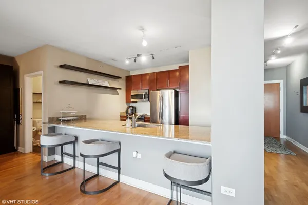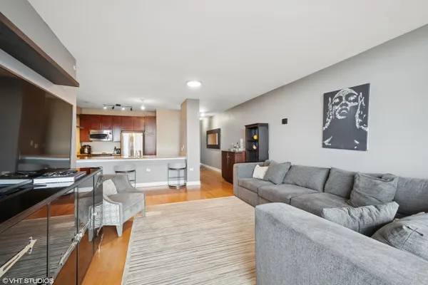 Welcome to luxury living in this stunning 1-bedroom + den condo located in one of South Loop's premier high-rise buildings. This bright and modern unit features floor-to-ceiling windows in both the living room and primary bedroom, showcasing a beautiful east-facing view of Lake Michigan and Lake Shore Drive from your sprawling private balcony-the perfect place to start your day or unwind at night. Inside, you'll find hardwood floors throughout the living area and kitchen, along with a gourmet kitchen that boasts an oversized granite island, sleek stainless steel appliances, and plenty of counter space for cooking or entertaining. The open-concept layout flows effortlessly into the spacious living and dining area. The primary bedroom is filled with natural light and generous closet space, while the den offers the flexibility to be a home office, guest room, or creative space. Additional conveniences include in-unit laundry and the option to purchase an indoor heated parking spot. Dedicated EV charging now available! This high-end amenity building brings resort-style living to your doorstep with a penthouse-level indoor swimming pool, a fully equipped fitness center, and a huge party room with panoramic skyline views. A 24-hour doorman provides added peace of mind. Monthly assessments include nearly everything: Heat, A/C, water, parking, internet/Wi-Fi, doorman, insurance, snow removal, scavenger, pool, exercise facilities, and all exterior maintenance. Deeded parking sold separately for $35,000. Location, location, location! Shopping, dining, and entertainment are just steps away. You'll love the easy access to Lakeshore Drive, expressways, public transit, and the lakefront path-making this an ideal home for commuters and city lovers alike. Don't miss this opportunity to own a luxury condo with breathtaking views in one of Chicago's most dynamic neighborhoods.